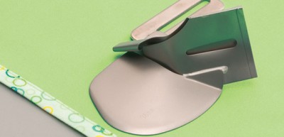 Viker kantbandet 4 gånger och syr fast i ett enda moment i fasta tyger.