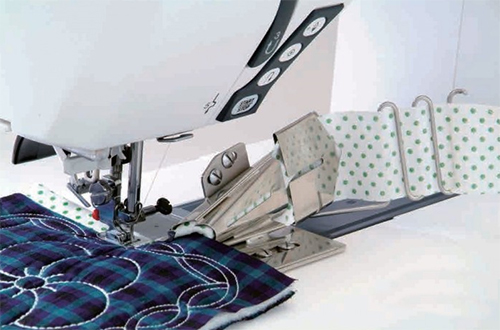 Används för att tillverka, guidar och viker bandet runt den råa kanten och syr fast i ett enda moment.