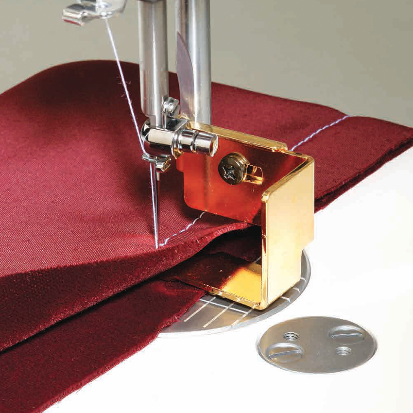 Matar sammetstyget försiktigt med endast ett lätt pressarfotstryck. Foten lämnar inga spår på sammetstyget